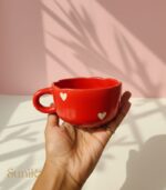 Imagine a slow holiday morning—soft light, a warm drink, and the Red Heart Cup in your hands. Handcrafted by Indian artisans, its bright red glaze and tiny painted hearts make the moment feel a little cozier and a little more special.