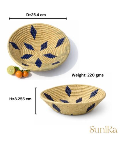 Handcrafted Moonj Grass Fruit Basket in Blue